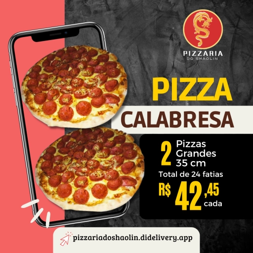 (R$ 42,45 cada pizza) 02 Pizzas de Calabresa, 35cm, Total de 24 fatias.